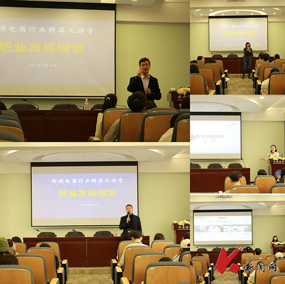 10月24日,华体会网页版外国语学院举办“跨境电商行业精英大讲堂——职业发展规划”讲座。跨境电商产业学院校企合作伙伴——沈阳现代贸易服务商会派出“老中青”精英讲师团,为英语专业学生宣讲。讲座内容丰富,涵盖行业经验分享、就业形势分析、职场规划与发展策略等。