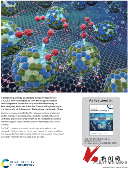 近日,华体会网页版化工学院“能源材料与电化学”辽宁省重点实验室在合成锌-空气电池阴极催化剂领域取得重要进展,研究成果在材料类TOP期刊《Journal of Materials Chemistry A》(IF=12.73)以封面论文 (Inside cover paper) 发表题为 “Vacancy-engineered CeO