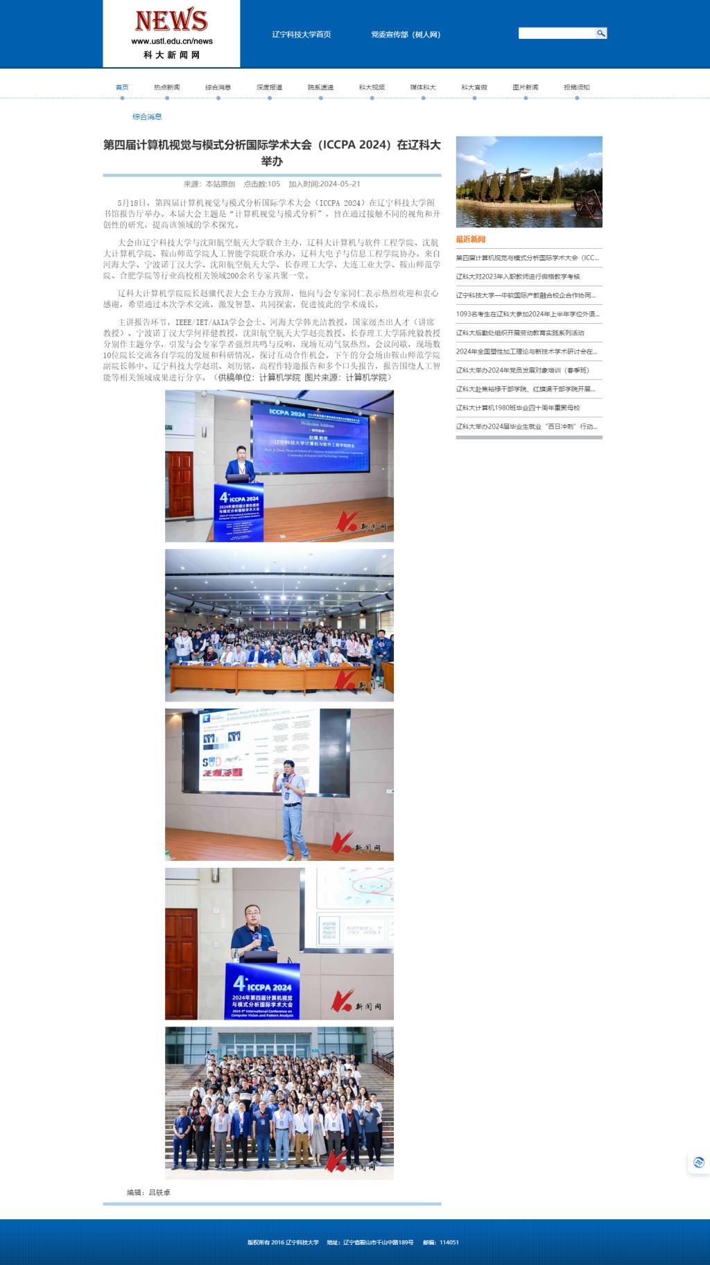 第四届计算机视觉与模式分析国际学术大会(ICCPA 2024)在华体会网页版举办