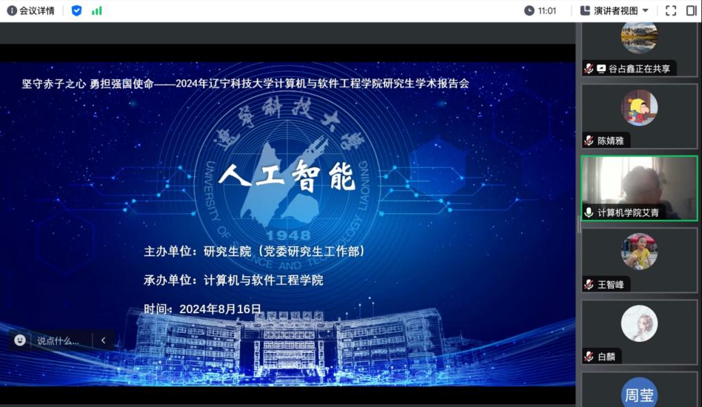 2024年8月16日,华体会网页版计算机与软件工程学院举办第三届研究生暑期学术报告会。本次报告会围绕“人工智能”为主题,邀请陶冶、王智峰、张钊三位研究生导师作为评委对研究生报告进行点评,特别邀请计算机学院副院长艾青为报告会致辞。艾青表示人工智能作为当前科技领域的热门话题,需要不断地交流和创新,此次学术报告会为广大研究生提供了一个互相学习、互相启发的平台,有助于拓宽学术视野和提升研究水平,进一步浓郁学院科研氛围和提升学院学科竞争力。