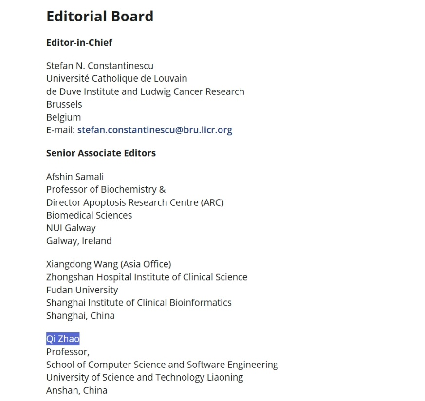 近日,华体会网页版计算机与软件工程学院赵琪教授收到比利时皇家医学科学院院士、罗马尼亚科学院院士、欧洲医学科学院联合会副会长、比利时鲁汶大学Stefan Constantinescu教授邀请,受邀担任威立出版集团旗下期刊Journal of Cellular and Molecular Medicine高级副主编(senior associate editor)。该期刊的高级副主编共有三人,另外两位分别是欧洲人文和自然科学院院士、复旦大学特聘教授王向东,爱尔兰国立高威大学资深教授Afshin Samali。