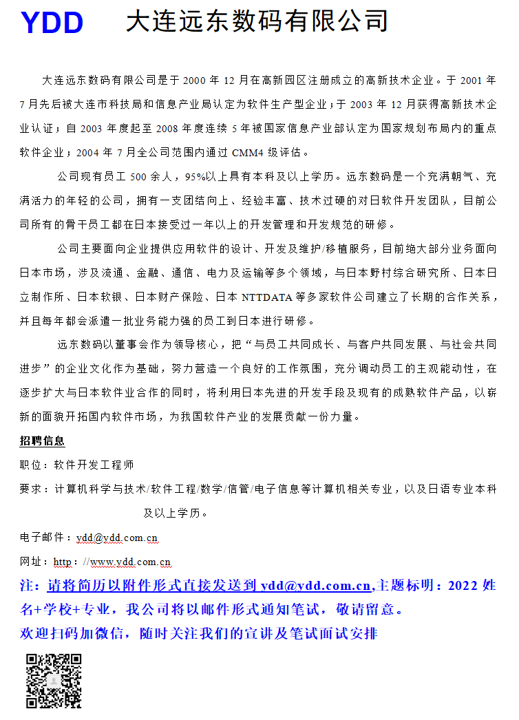 大连远东数码有限公司招聘信息
