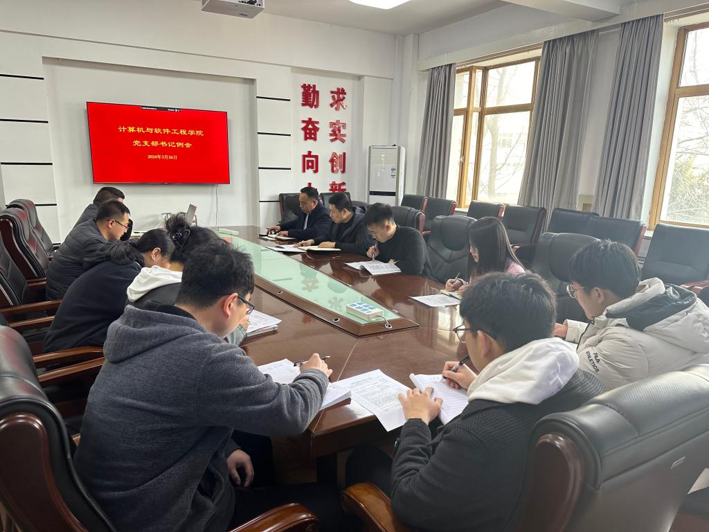 326午,计算机与软件工程学院在博识楼B327会议室召开党支部书记会。学院党委书记副书记全体党支部书记、组织员参加会议,会议由院党委书记陶润主持。