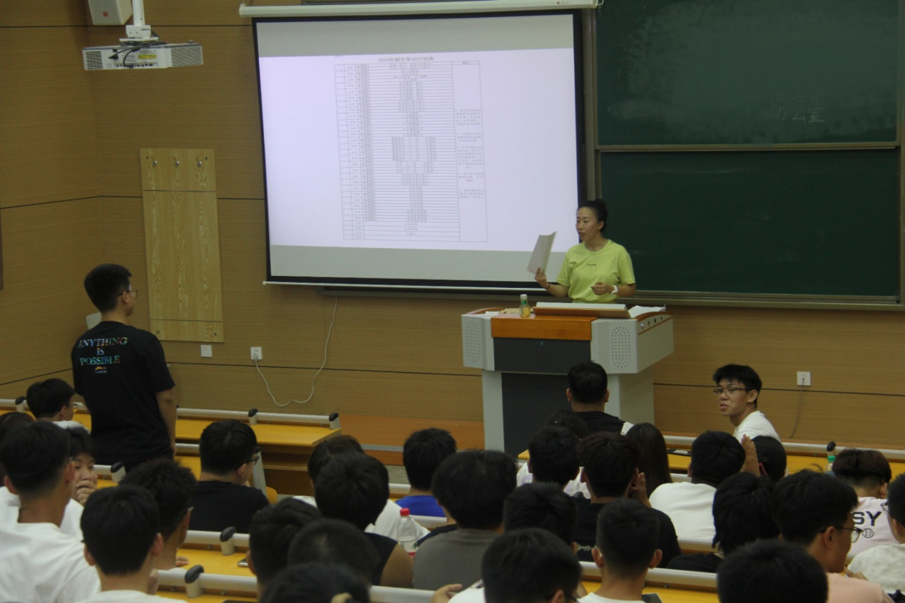 9月7日下午,国际教育学院在博智楼多媒体教室召开2023级新生军训动员大会,本次会议由辅导员张翀睿主持,2023级全体同学以及各位班导生参加本次会议。