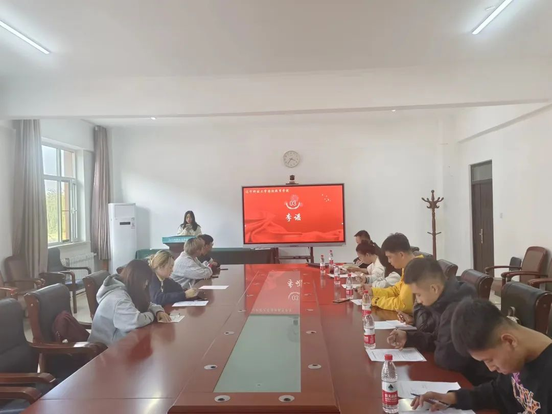 10月9日下午,国际教育学院于博远楼206会议室召开国际教育学院团员答辩会。答辩会由学院副院长郑云超、学院辅导员张翀睿、党员代表、团员代表、团支书代表、学生骨干代表、群众代表等七人担任现场评委,郝蓉、王宏睿、李谣、宋昀霏、李鑫等五人参加本次答辩会。