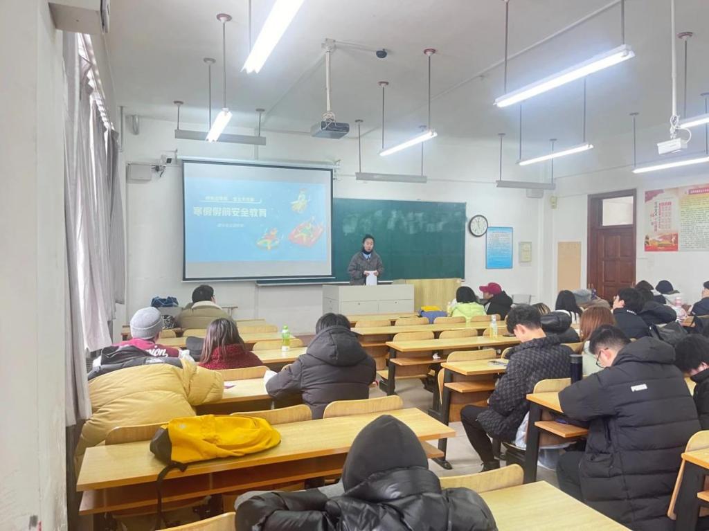 1月5日,国际教育学院于博学楼A402、C504召开假前安全教育主题班会。辅导员张翀睿主持本次班会,联冶金全体同学参加。