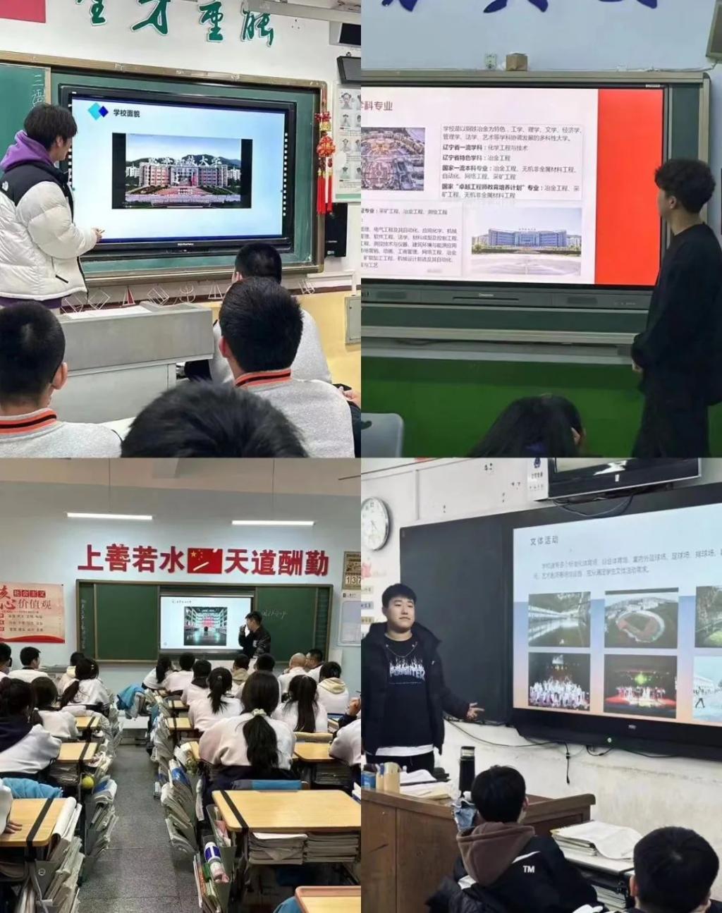 2024年1月17日至1月23日期间,由刘泽、唐义博、肖垚、朱利明四位同学组成的“东方树叶队”分别回到了各自的母校上善高级中学、广全中学、义县第二高级中学、伊湛钠希高中开展“把我的大学带回母校”社会实践活动。在此次活动中他们向备战高考中的高三学弟学妹们介绍了华体会网页版的师资、校园文化以及校舍环境,让同学们更加深入地了解科大,并且向学弟学妹们分享了他们多姿多彩的大学生活以及在学习上的经验,来帮助学生们取得更好的成绩,增加对大学生活的向往。“东方树叶队”希望通过本次活动可以给高三的学弟学妹们拓宽高考报考方向,预祝他们取得理想的成绩,与科大在九月相约。