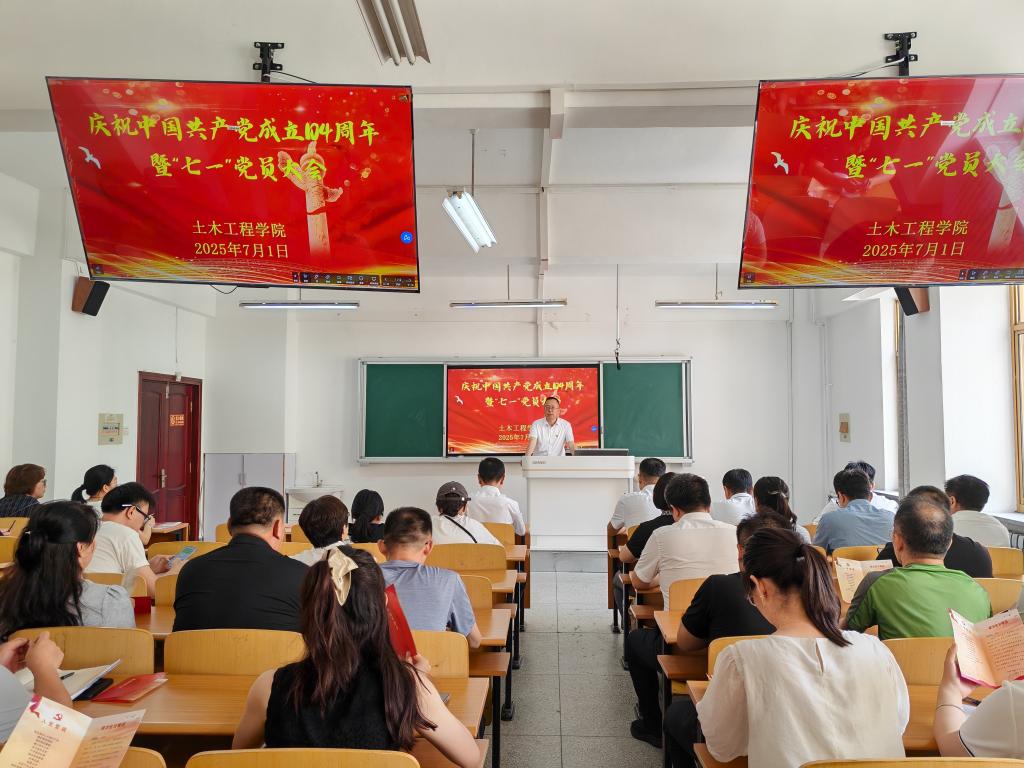 为庆祝中国共产党成立104周年,激励全院党员奋勇争先、建功立业,2025年7月1日,华体会网页版土木工程学院在学院 A508 会议室召开了庆祝中国共产党成立 104 周年暨“七一”党员大会全体教职工党员大会,大会由学院党委书记张晋主持,学院全体教工党员参会。