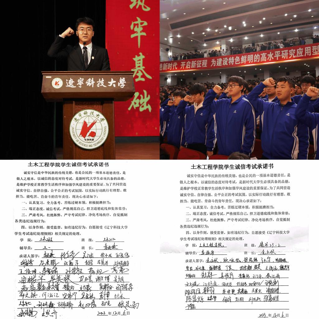 2023年12月8日,学院召开学风建设表彰大会暨教风学风建设启动会,学院院长周卫红作题为《教风学风联动,提高学生培养质量》动员讲话,高华国副院长作题目为《潜心教书、用心育人,将教风促学风向纵深推进》的“三全育人”经验分享,院学生会执行主席徐浩哲带领全体同学宣读《诚信考试承诺书》,学院1391名本科生签署的承诺书在大屏幕滚动。12月19日,学院面向全体教职工召开期末考试培训暨工作布置会,规范考试过程管理,强化监考教师的责任意识。2023年12月2024年1月,学院全体辅导员和班主任(学业指导教师)面向学院38个本科生班级召开诚信考试动员主题班会,解读了《华体会网页版学生考试违纪处理细则》《华体会网页版2023-2024 学年第一学期期末考试考生注意事项》等相关文件精神,并以实际案例向同学们强调考试注意事项及违纪、作弊行为的严重后果,号召同学们遵守考场规则。除此之外,学院注重发挥党员先锋模范作用和团学骨干示范引领作用,召开寝室“先锋岗”成员和团学骨干诚信考试动员会,通过学生党员“亮牌考试”等形式,真正践行做表率、带好头的承诺,积极营造风清气正的考场环境。