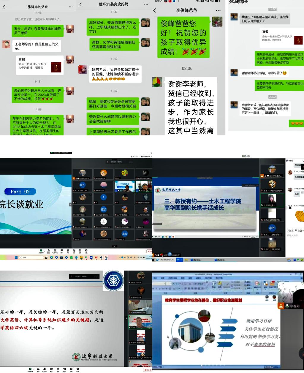 土木工程学院历来高度重视家校联动工作,秉持“1+2+2+3+N”工作思路,构建“学院领导班子统筹引领,专业课教师积极参与,辅导员全员参加”的工作机制,专项召开家访工作动员部署会,联合学校发展规划处、机关党委成立“暖心助学”家访团,走访慰问海城市接文镇和台安县黄沙坨镇重点帮扶学生,并先后对鞍山市区和海城地区、沈阳市、朝阳市等生源集中区域开展实地走访。与此同时,学院以年级为单位分别召开家长会并设计推进《土木工程学院2024年家访问卷》,详细摸底掌握家长们的意见建议,为后续精准化开展教育帮扶奠定基础。截至目前,已累计实地走访学生家庭16户、线上或电话家访68户,开展地区家长会1场、线上家长会7场,收回有效调查问卷1100余份,实现了较为突出的“携爱同行,共育新人”效果。