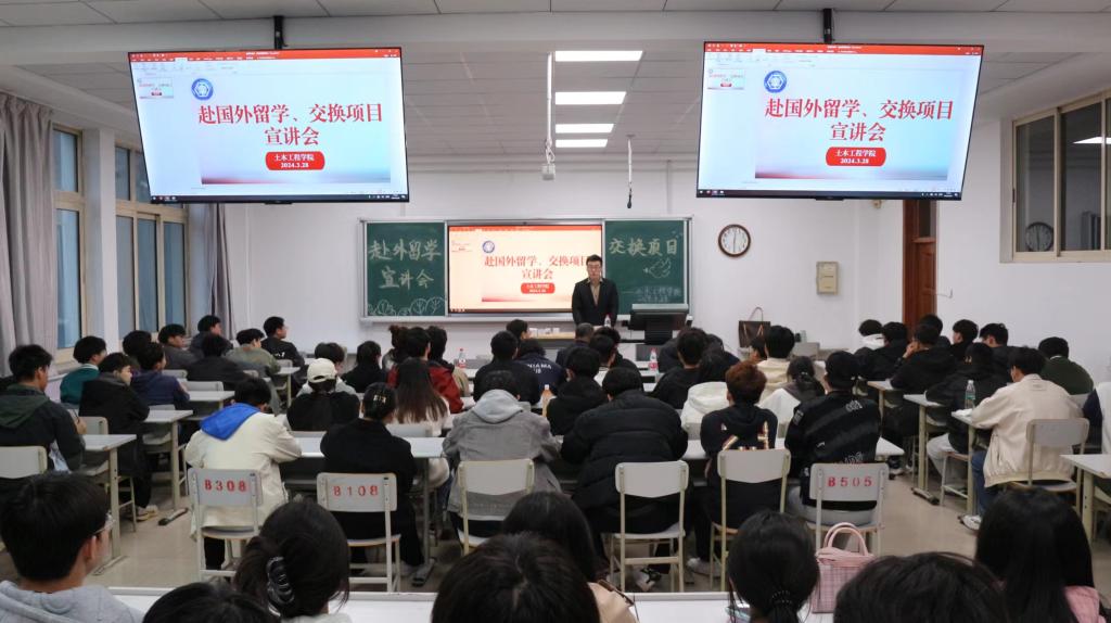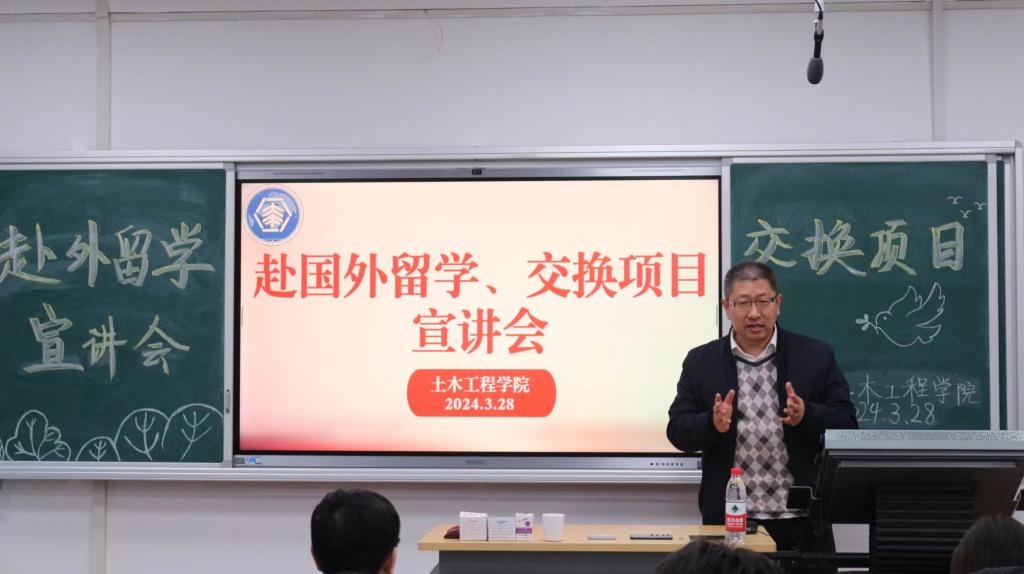 3月28日,华体会网页版土木工程学院于博学楼A302召开出国交流政策宣讲会。学院领导班子、国际教育学院(国际交流合作处)负责同志以及近百名学生参加宣讲会。