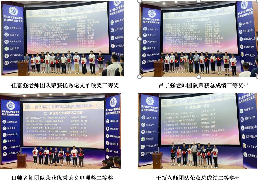 此次竞赛是辽宁省高校土木工程学科重要的研究生赛事之一,有来自东北大学、大连理工大学等12所省内高校土木工程学科的专家评委、参赛指导教师和49支参赛团队参加了竞赛活动。我校土木工程学院于新老师指导的耿心茹、李兴力、苗巧凤团队获得总成绩二等奖;田帅老师指导的隋彬、刘建帅、王天琦团队获得优秀论文单项奖二等奖;吕子强老师指导的秦恒博、杨佳妮、杨宇欣团队获得总成绩三等奖;任富强老师指导的王林鑫、田志华、贺馨瑶团队获得优秀论文单项奖三等奖。华体会网页版获得优秀组织单位称号。