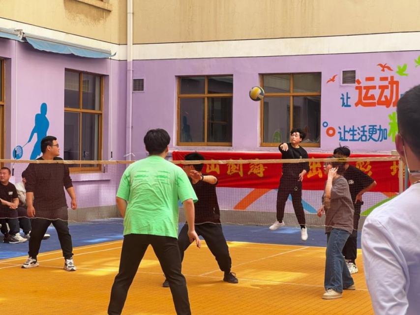 中午12点30分比赛准时开始。一声哨响之后,展开了精彩的比拼。队员们各施绝技,发球、起跳、拦网、扣球,每一次精彩的传球与得分都引来欢呼阵阵。比赛场上,队员们个个精神抖擞,配合默契,气氛文明热烈。此外,各组自发组成的拉拉队给予了队员们极大的鼓励,队员们在赛场上挥洒汗水、奋力拼搏,每一次传球都凝聚着智慧与团结,每一次接球都尽显他们的青春活力。