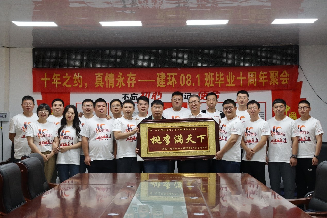 会后,建环2008级全体同学向土木工程学院建环系赠送《桃李满天下》牌匾,并合影留念。