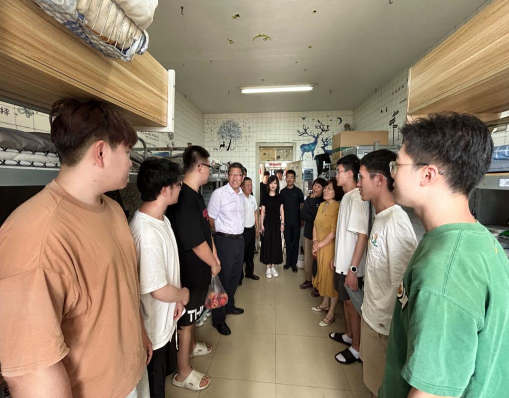 毕业生宿舍内,各位领导老师与毕业生们亲切交谈,详细询问同学们的就业去向、发展规划及行程安排、离校中遇到的困难等,并征求大家对学院教育教学、日常管理、校园文化等方面的意见建议,叮嘱同学们在离校时注意安全、文明离校,希望全体毕业生将学院“扎实,踏实,求实”的作风传承下去,在未来的工作岗位上担当作为、拼搏奉献,做出经得起检验的优异成绩。毕业生们纷纷感谢母校及各位老师的恩情,表示一定牢记嘱托、勤恳工作,决不辜负校院的期许,以优异的成绩回报母校和社会。师生还共同约定,待母校80周年校庆时,共同返校、共襄盛举。